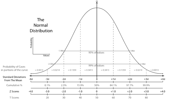 If you look at a standard bell curve, normal people make up the big fat lump in the middle